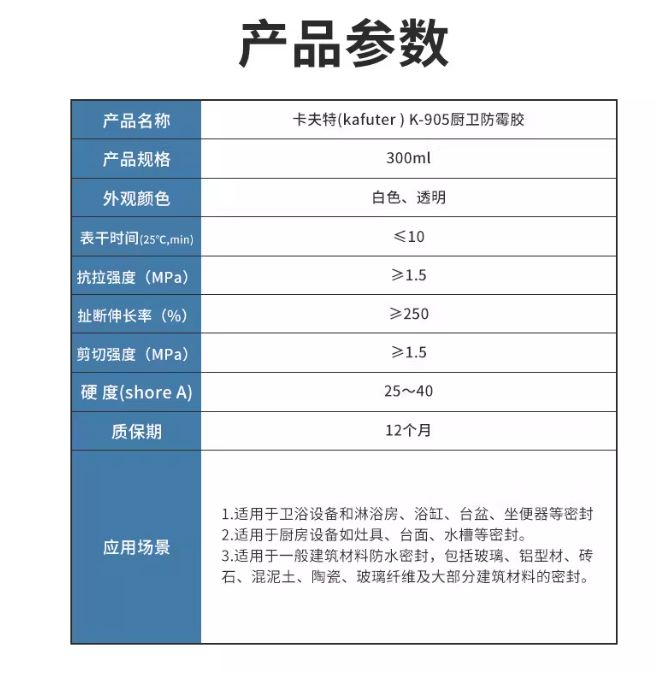 防霉密封:專為廚房、衛(wèi)生間等潮濕環(huán)境開發(fā),能防止菌滋生,提供持久的密封保護。