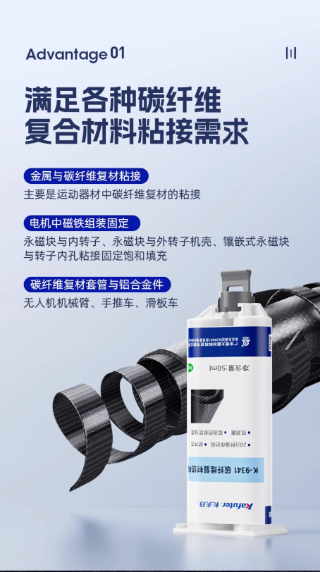·工業領域:如無人機結構件、電子電器傳感器、3D打印機等裝配。T交通運輸:用于船舶、商用大巴、汽車(包括內飾、發動機部件)等。1運動器材:適用于碳纖維自行車架、高爾夫球頭球桿等體育用品的結構粘接。通用粘接:除碳纖維外,還可粘接金屬、玻璃、陶瓷、塑料、木材等多種基材。