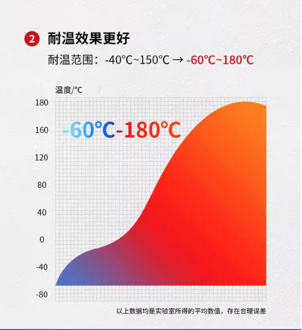 耐溫范圍廣:長期使用溫度100-150℃℃,短期可耐受-60℃低溫。